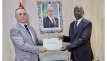 استقبل وزير الشؤون الخارجية والتعاون الإفريقي والموريتانيين في الخارج، محمد سالم ولد مرزوك، اليوم الاثنين بمكتبه في نواكشوط، السفير الروسي الجديد حيث تسلّم الوزير من الدبلوماسي الروسي نسخة من أوراق اعتماده بصفته سفيرًا فوق العادة وكامل السلطة لبلاده لدى الجمهورية الإسلامية الموريتانية.