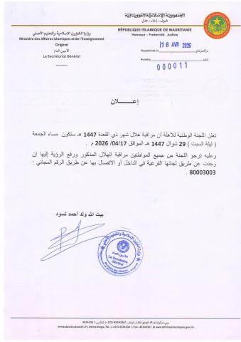 دعت اللجنة الوطنية لمراقبة الأهلة، إلى تحري هلال شهر ذي القعدة مساء غد الجمعة الـ29 من شهر شوال للعام الهجري 1447، الموافق لـ17 من شهر إبريل الجاري.